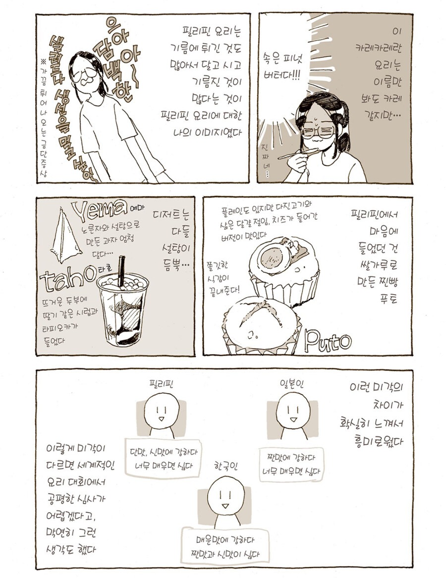 필리핀은 조미료와 뜨거운 신맛이 적응 하기 어려웠죠.